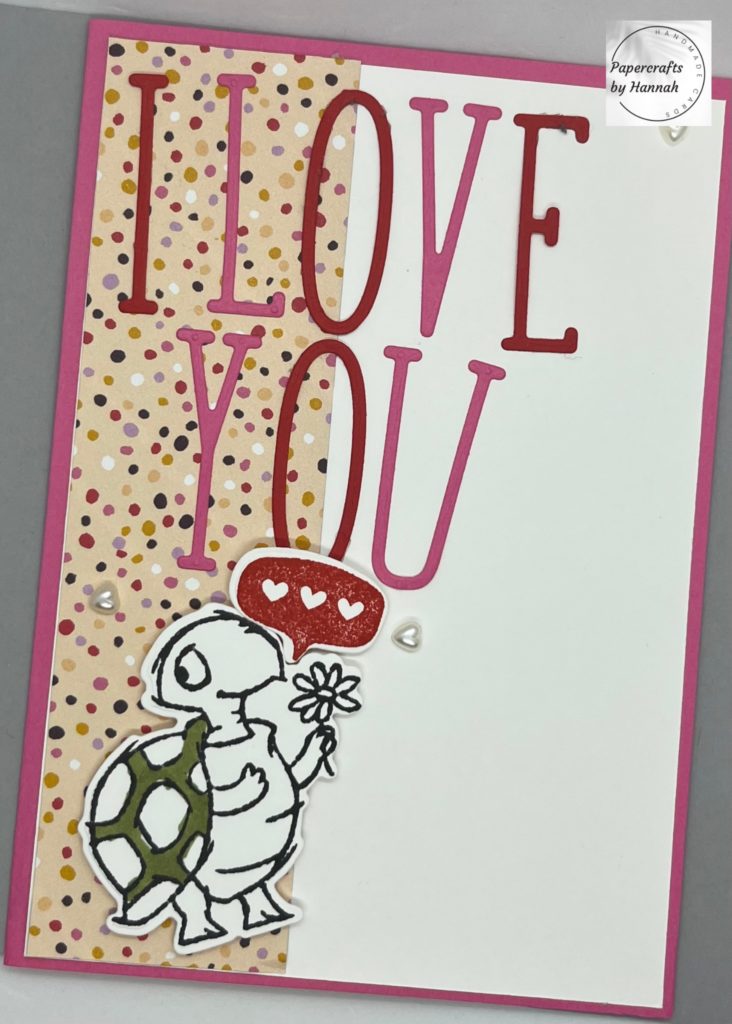 9. Stick the words I LOVE YOU at the top pf the card before sticking the turtle using adhesive dimensional the bottom