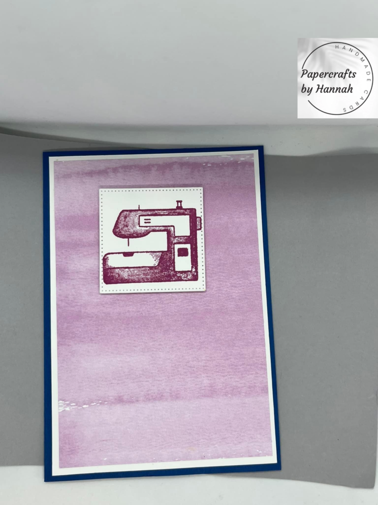 The next card I made using the Blueberry Bushel as the base (14.9cm) and then cut the basic white at 14.4x 10cm and then it the bright and beautiful DSP at (13.9×9.5 cm) and then stamped the sewing machine in berry burst on basic white and then die cut using the stylish shapes .